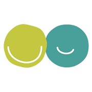 ○と○をくっつけて「人と会える場所」「人と話せる場所」「人と笑い合える場所」をイメージしています。